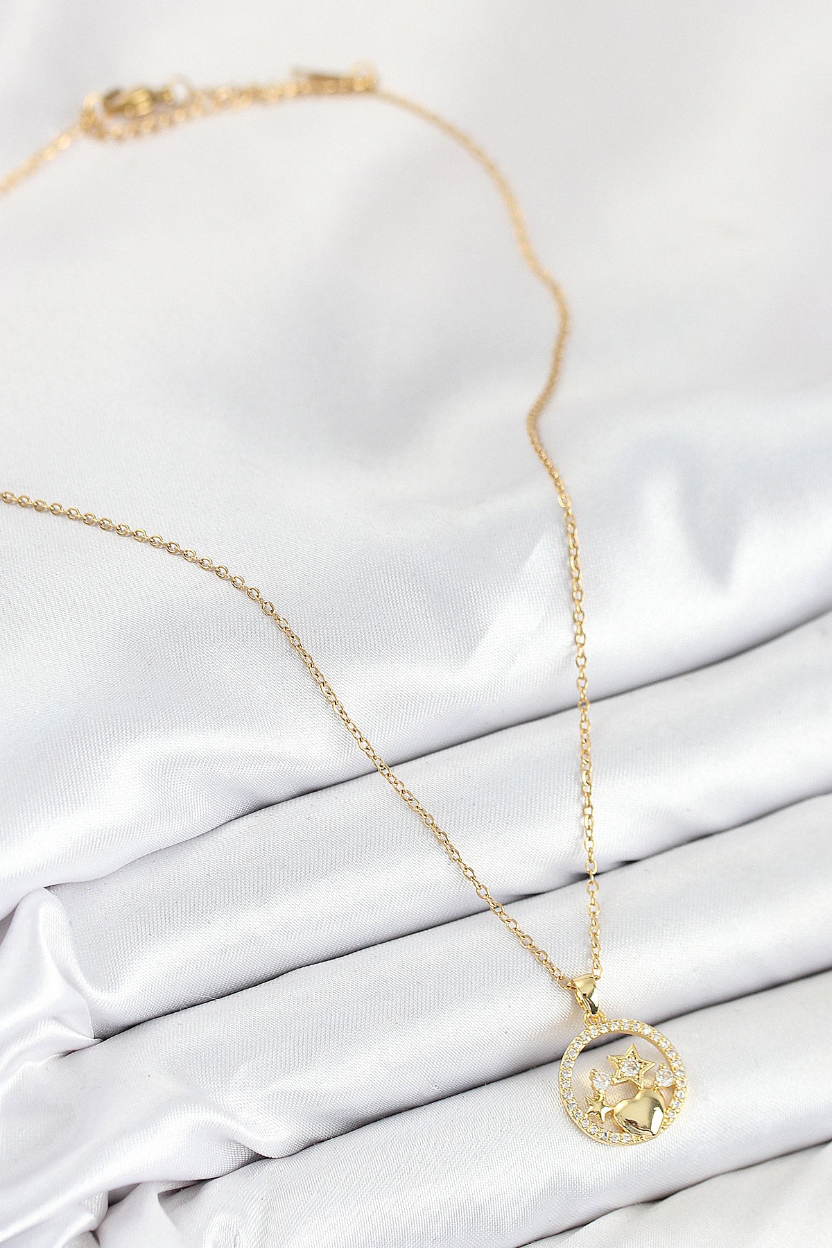 EBJ 316L Stainless Steel Star and Heart Model Necklace with Zircon Stone Gold Color for Women - Schiltigheim