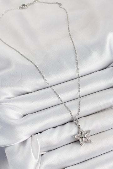 EBJ 316L Stainless Steel Star Model Necklace with Zircon Stone in Silver Color for Women - Lethbridge