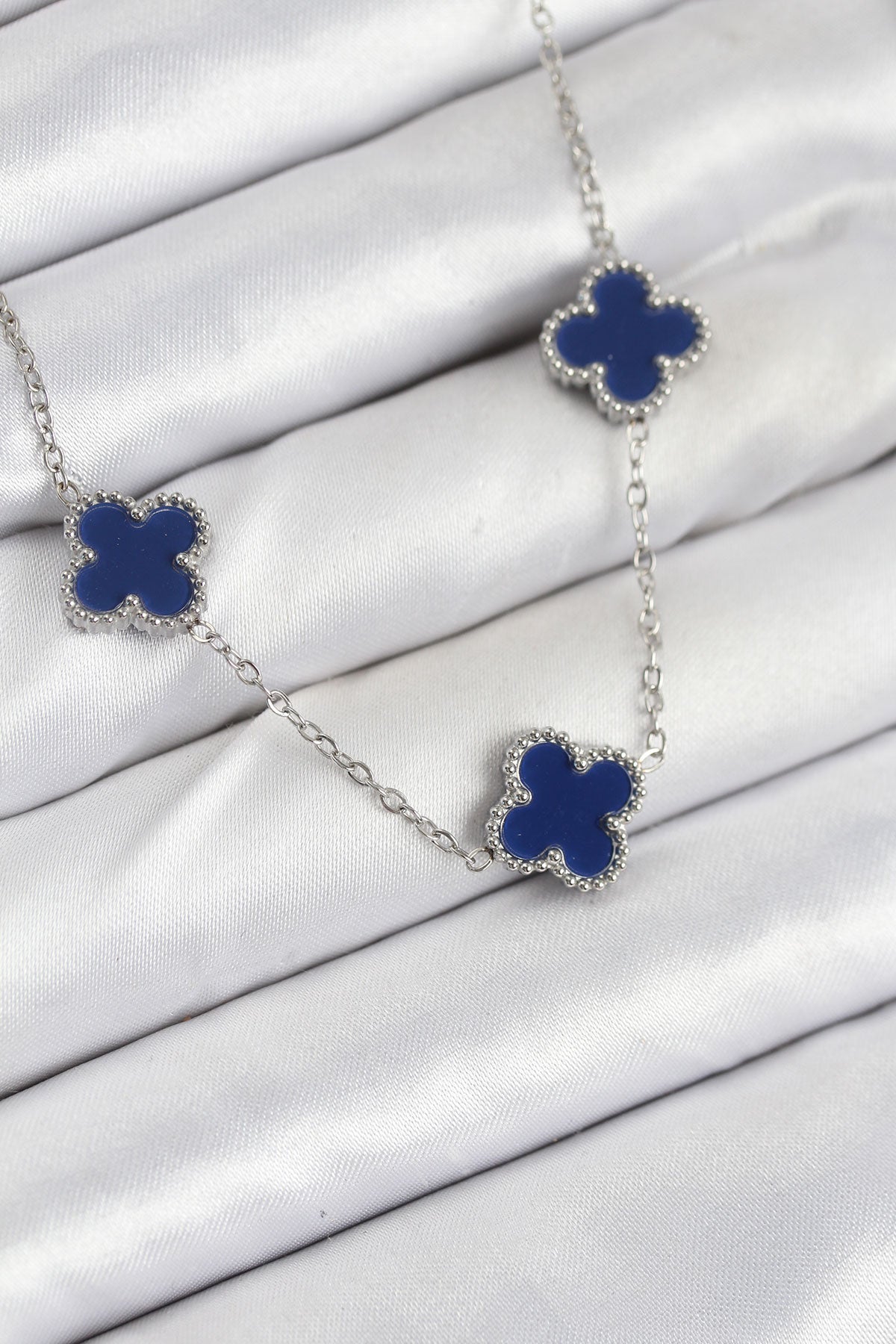 EBJ 316L Steel Chain Silver Navy Color Clover Women's Necklace - Vaudreuil-Dorion