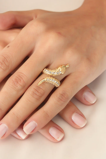 EBJ Gold Color Adjustable Zircon Stone Women Snake Ring - Denton