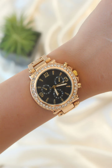 EBJ Gold Color Zircon Stone Black Dial Women's Watch - Alexandria