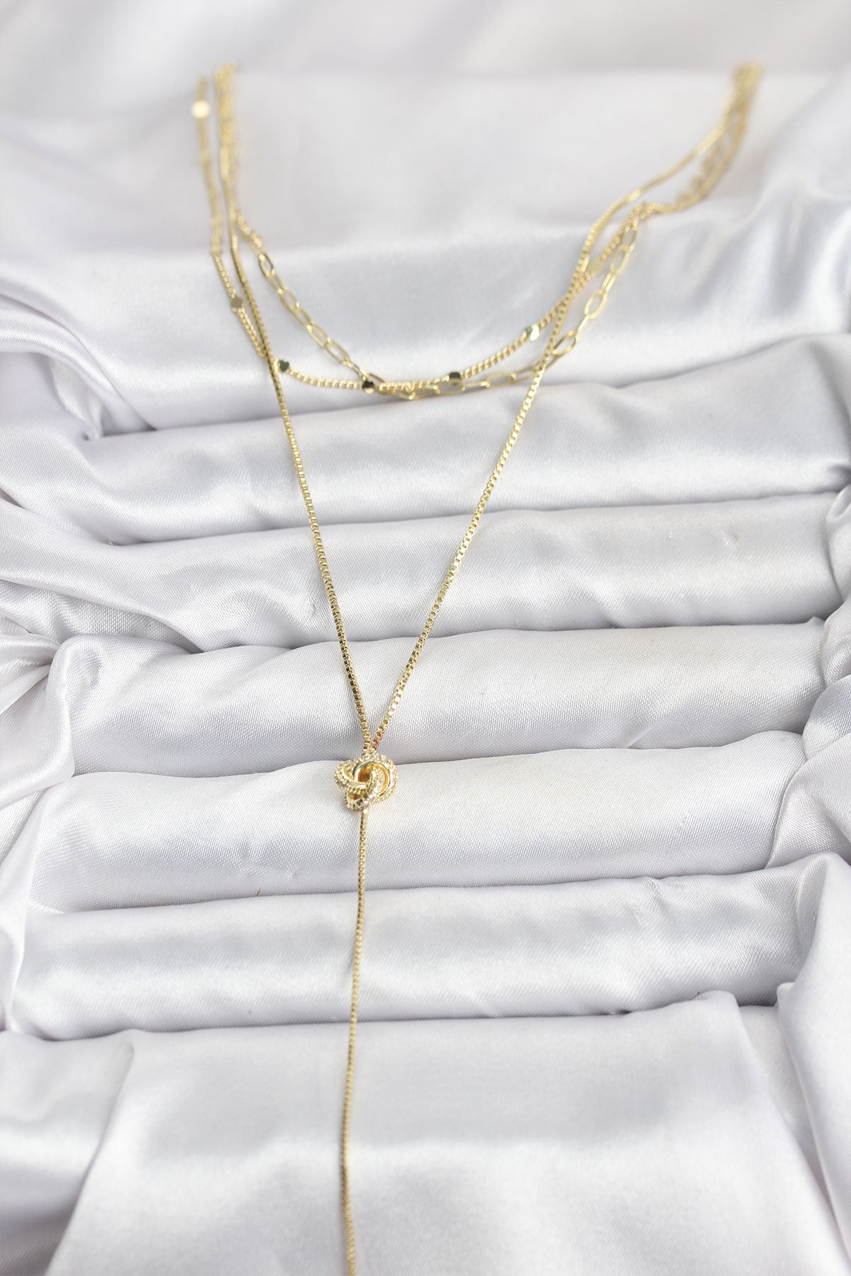 EBJ Rice Gold Color Knot Pattern Detailed 3-Piece Set Y Women's Necklace - Horad Barysaw