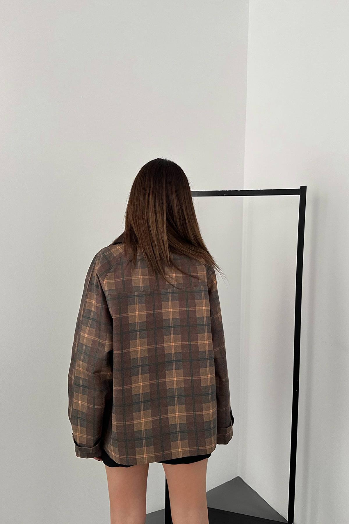 Toptan Hardal Yakası Garnili Ekose Ceket