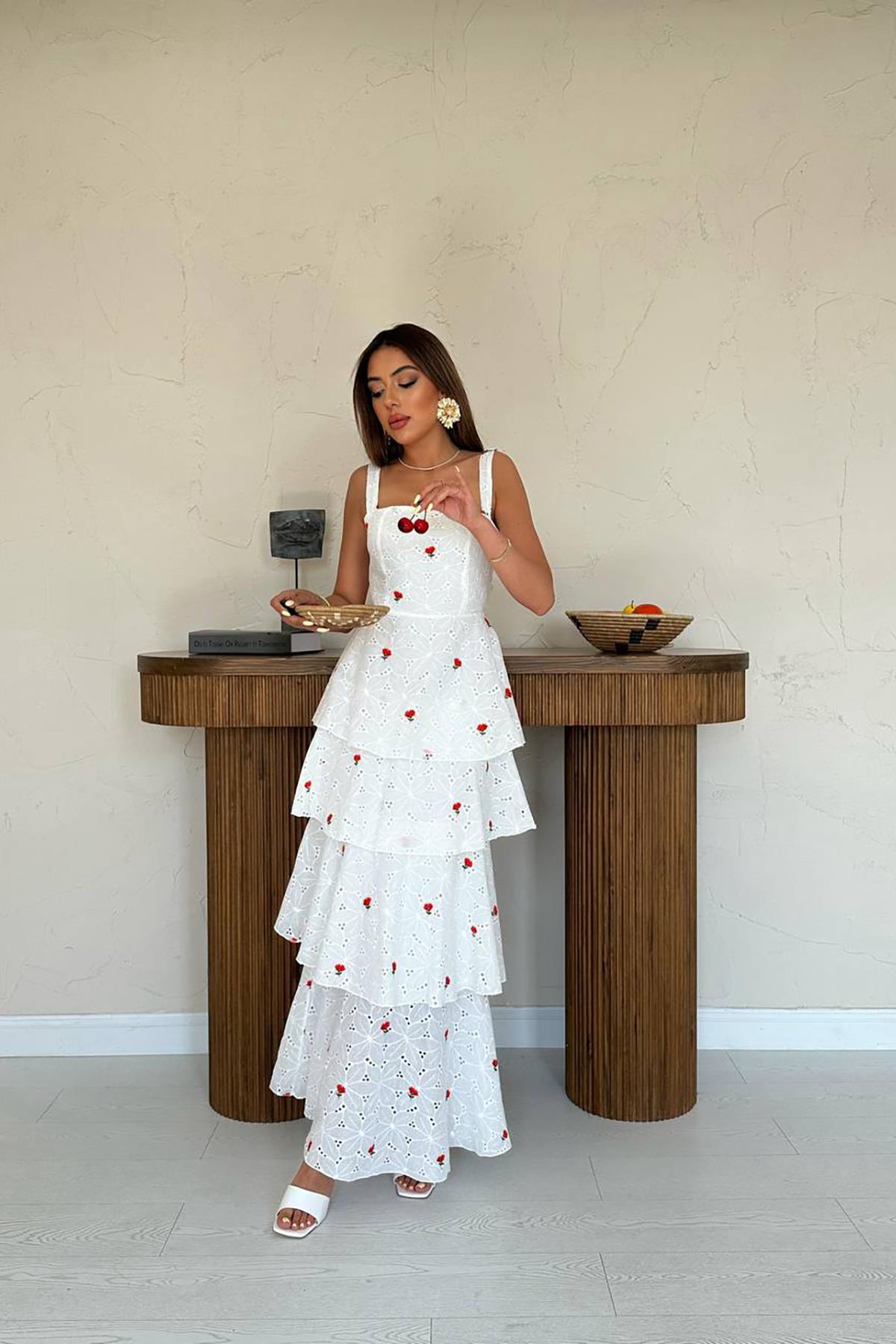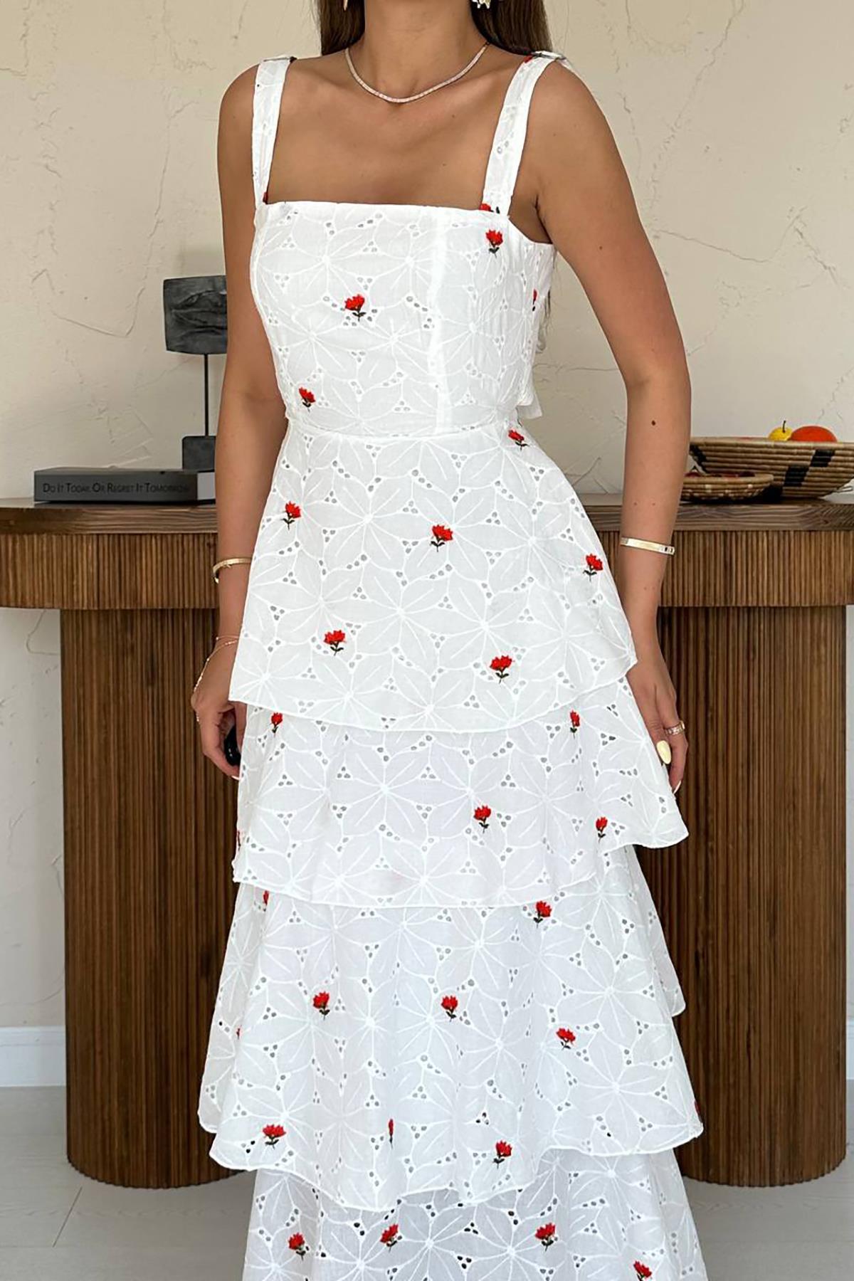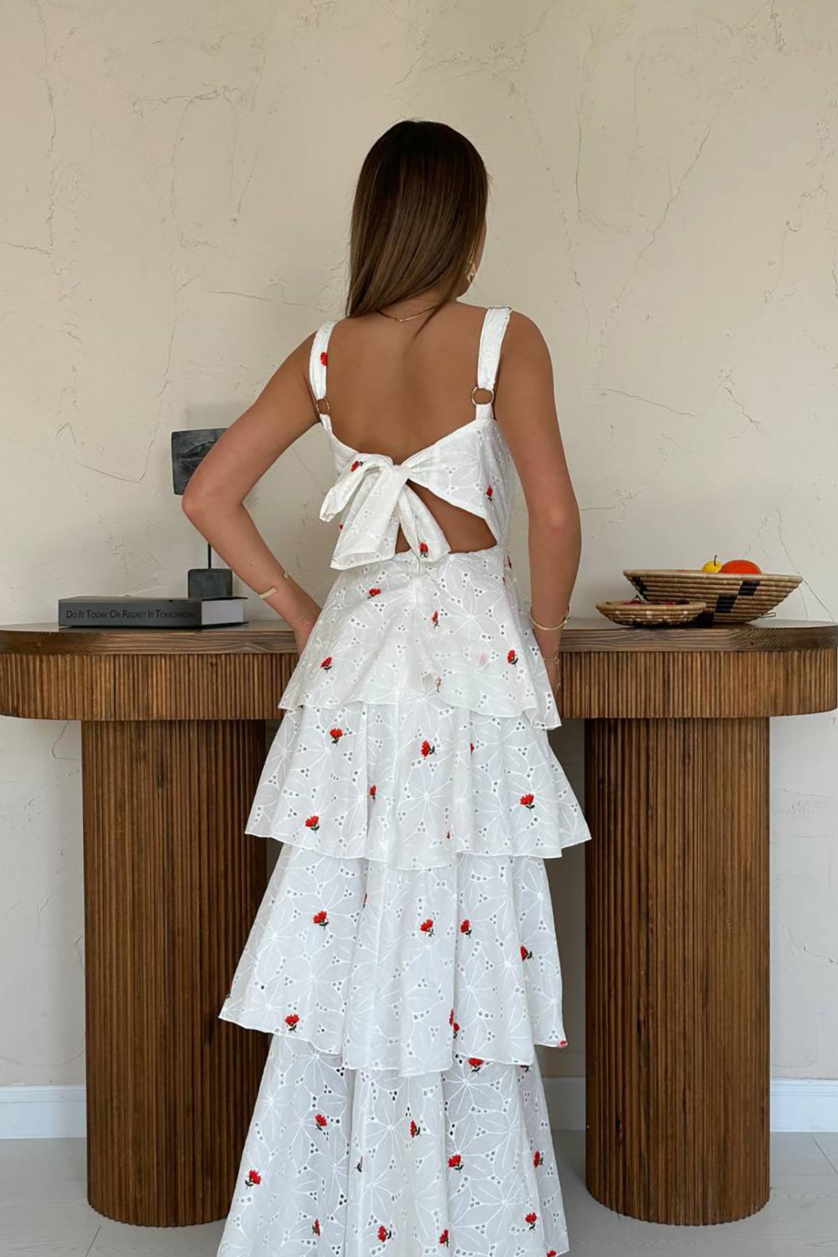 ELS Toptan Kırmızı Kat Kat Arkası Bağlamalı Elbise - Suhl