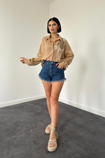 Wholesale Beige Pulpayet Embroidered Sleeveless Shirt