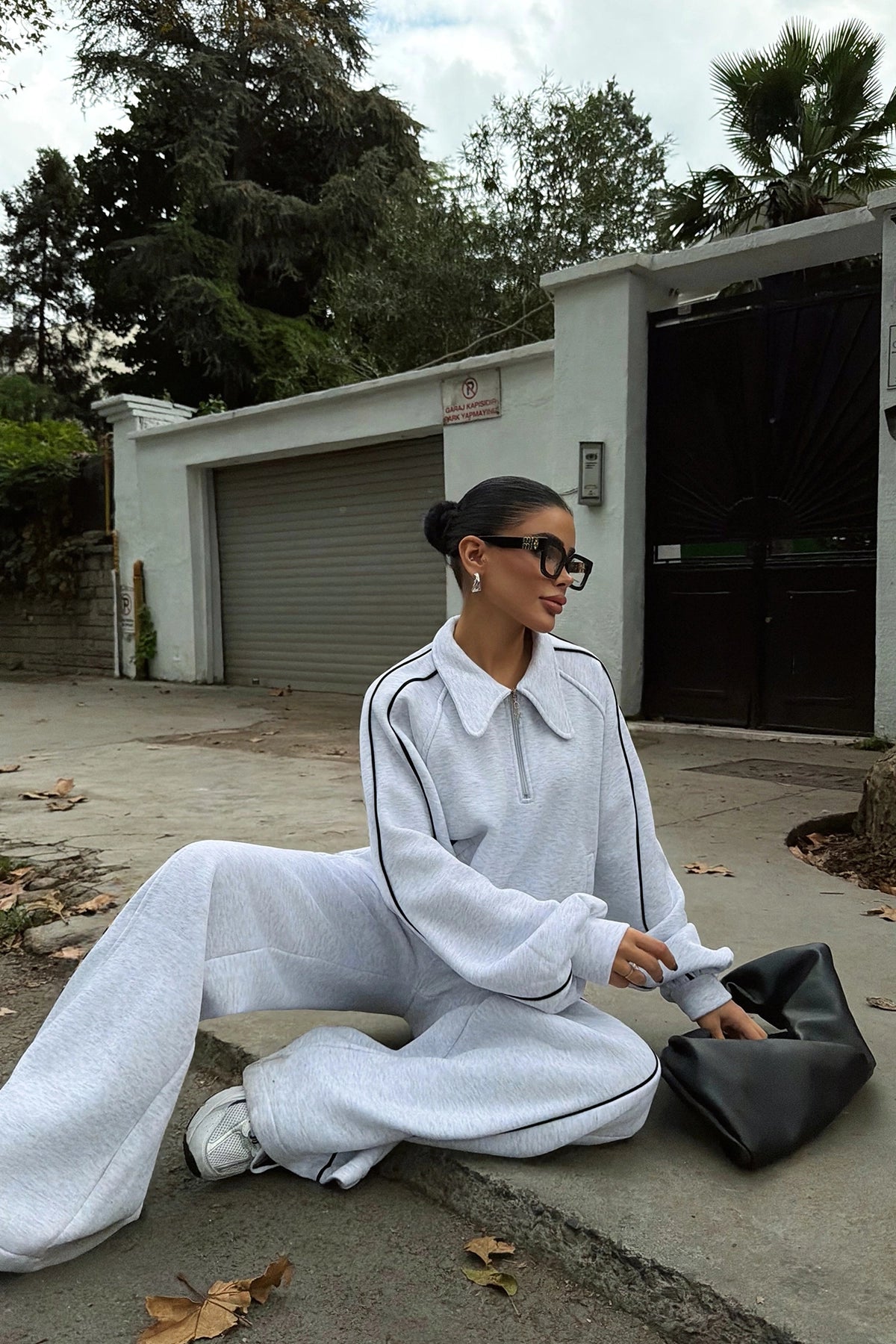 EYY Women Gray Striped Detail Tracksuit - Fishers