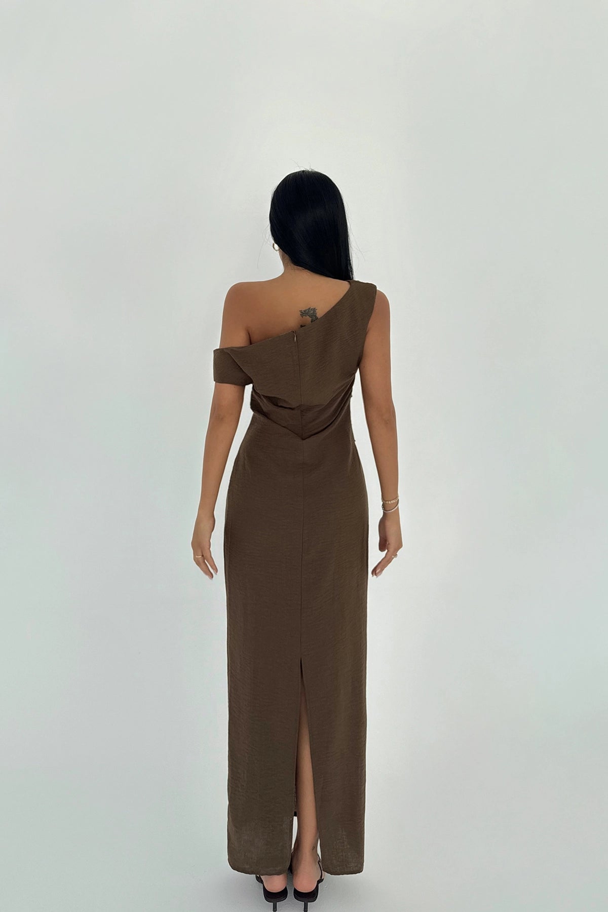 EYY Women Kahverengi Yırtmaç Detaylı Pilili Elbise - Montesilvano