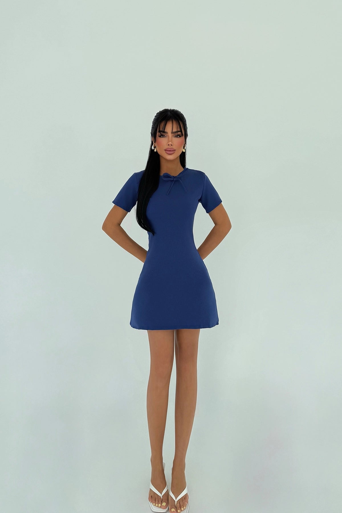 Navy Blue Deserae Mini Bow Dress