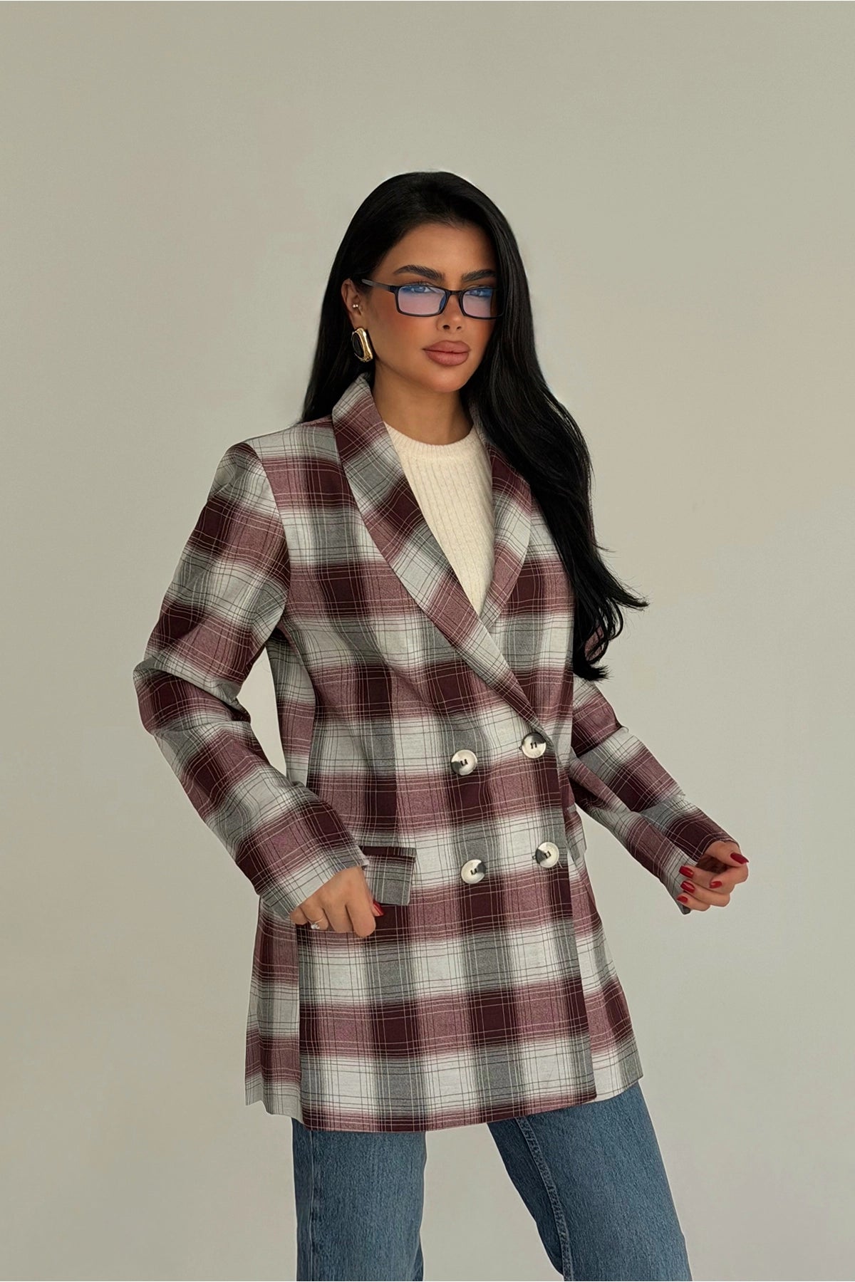 EYY Women Purple Buttoned Plaid Jacket - Levallois-Perret