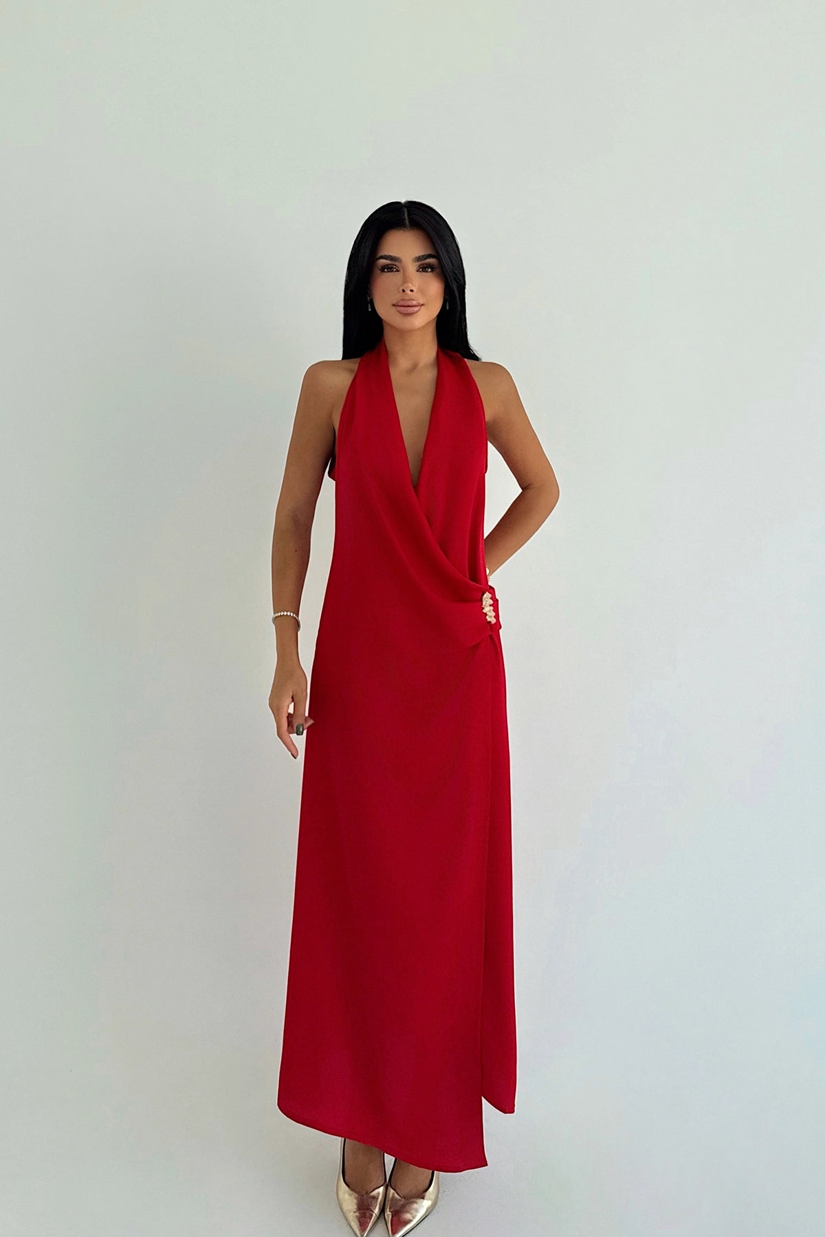 EYY Women Red Constas Accessory Detailed Dress - Teziutlan