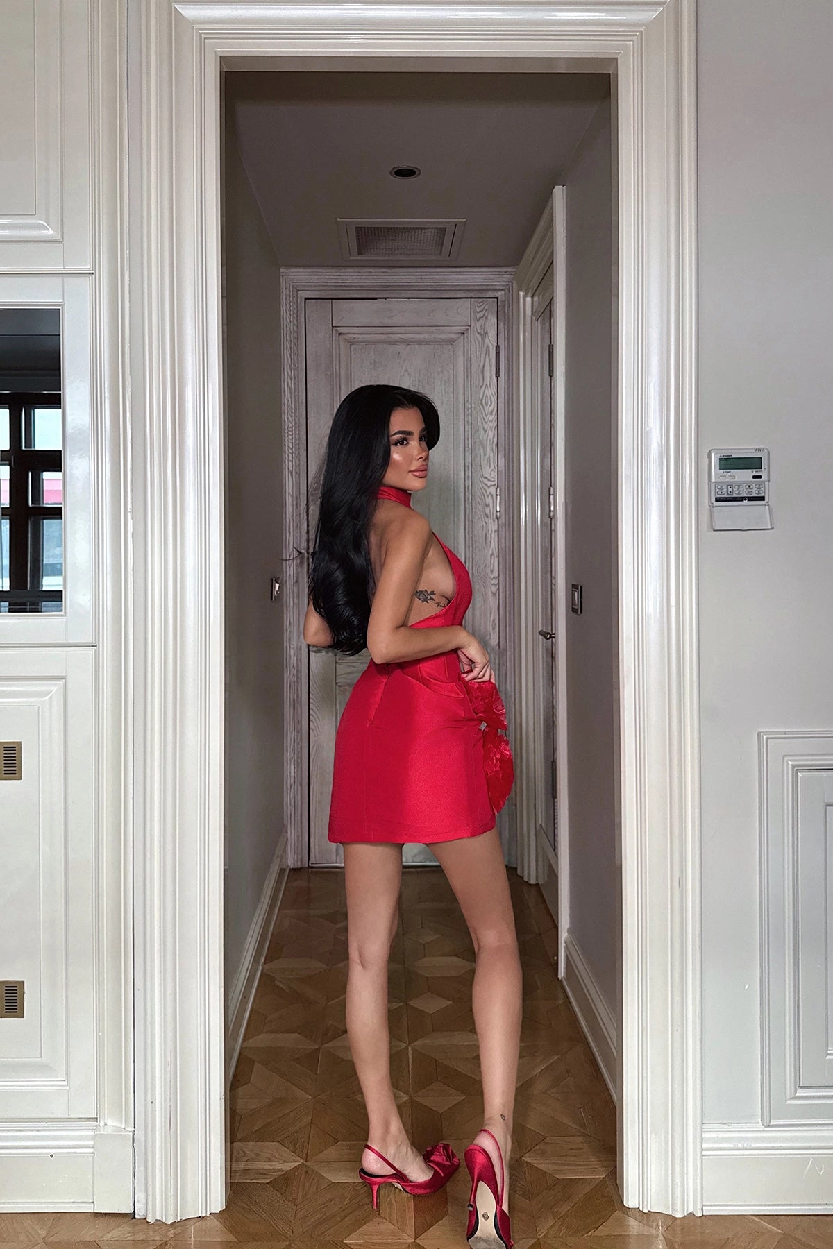 Red Freyya Mini Dress with Rose Hem