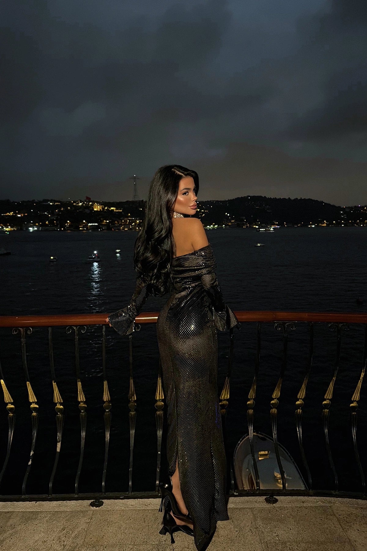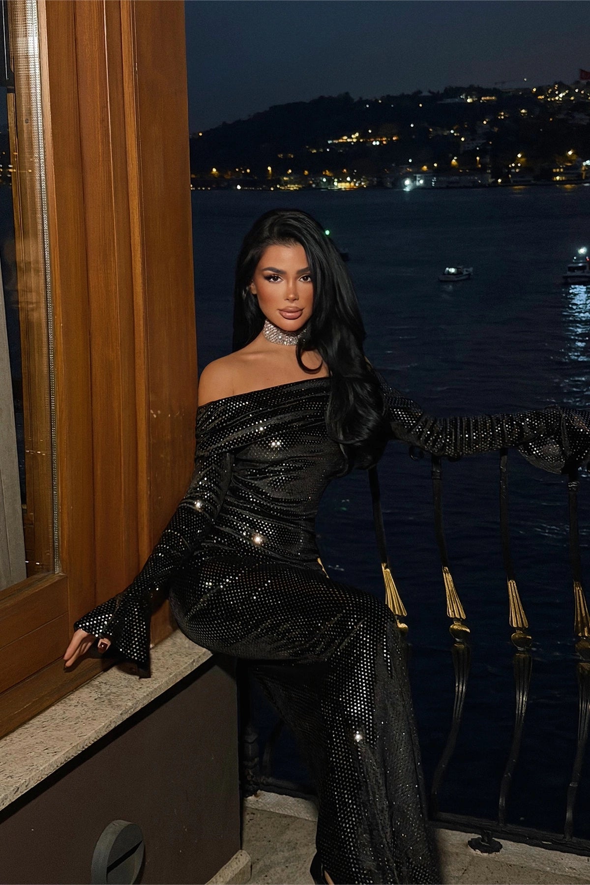 EYY Women Silver Sequined Boat Neck Long Dress - Falkensee