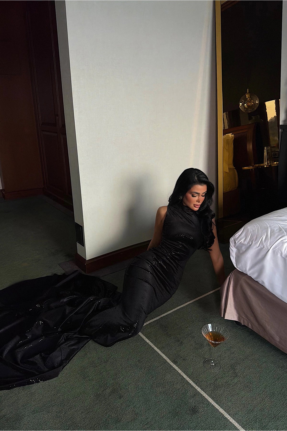 EYY Women Siyah Payetli Uzun Elbise - Goslar