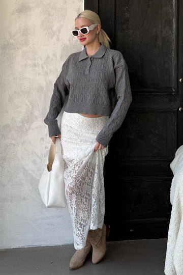 MDX Anthracite Hair Braided Polo Neck Women's Sweater Mg2310 - Brick