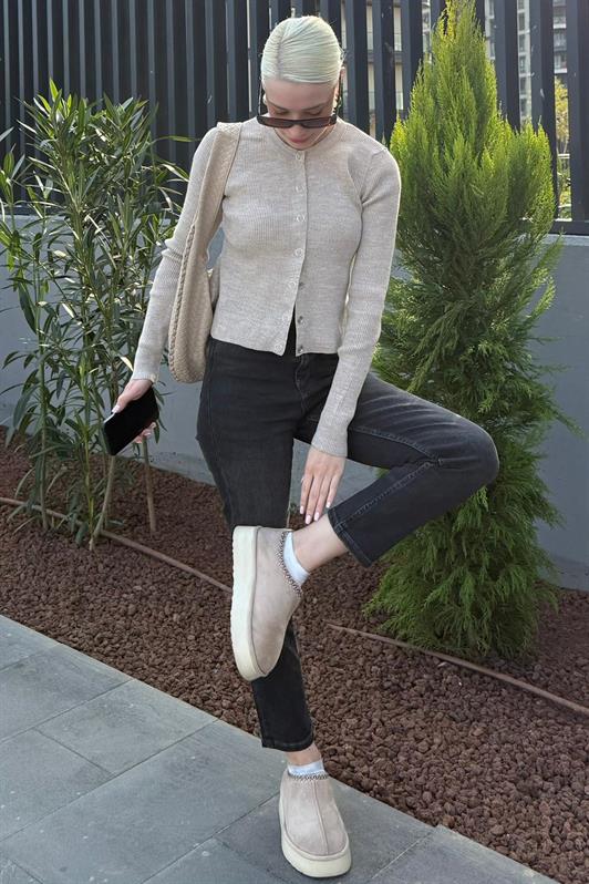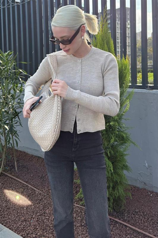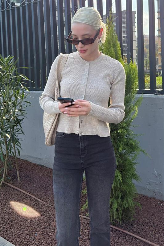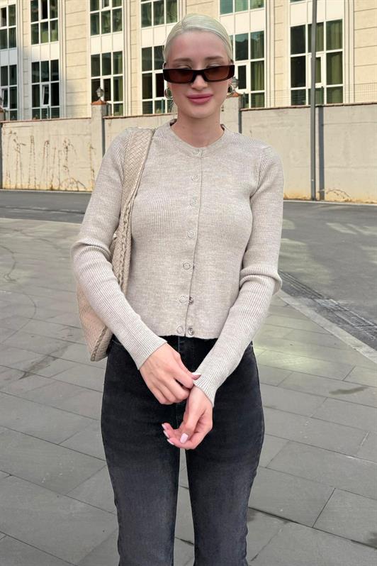 MDX Bej Çıt Kapamalı Triko Kadın Hırka MG2579 - Kansas City