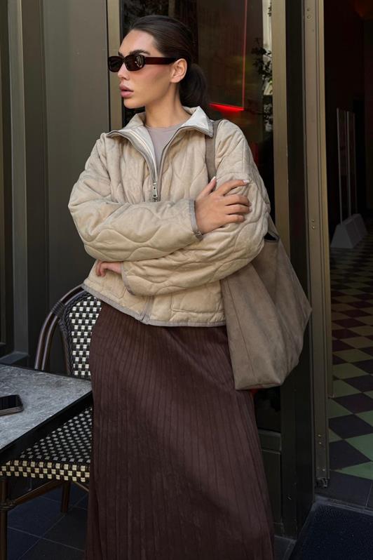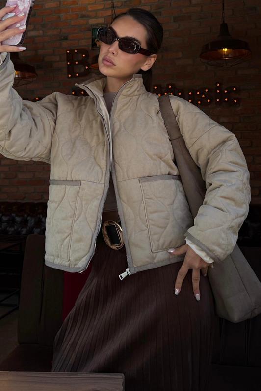 MDX Bej Dik Yaka Kapitone Kadın Mont MG2568 - Rouen