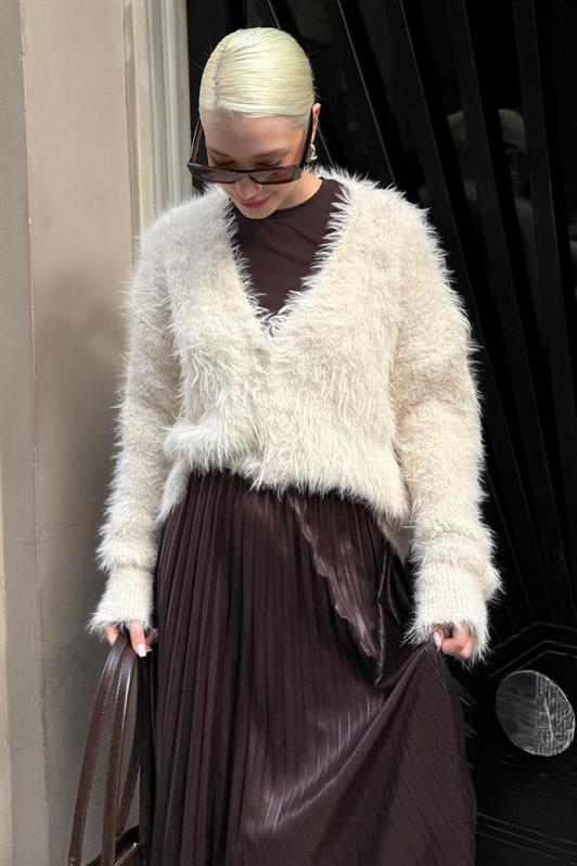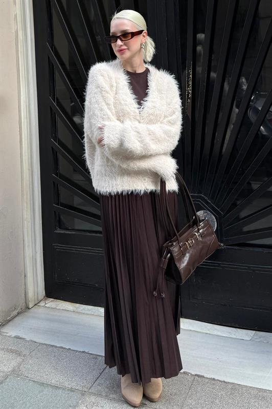 MDX Bej Sakallı Düğmeli Kadın Hırka MG2570 - Boucherville
