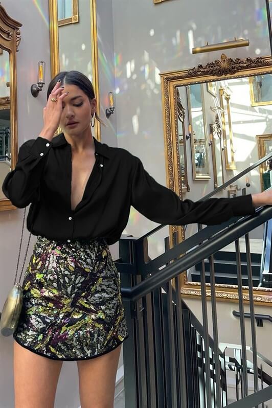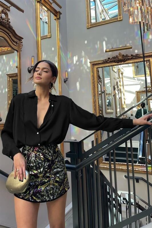 MDX Black Basic Women's Satin Shirt MG1326 - Holyoke