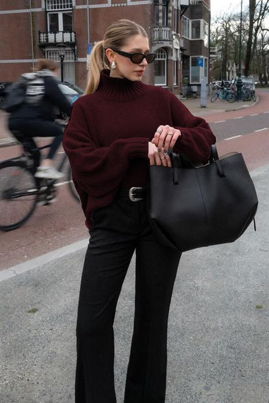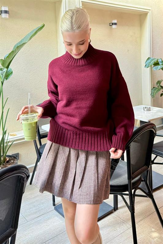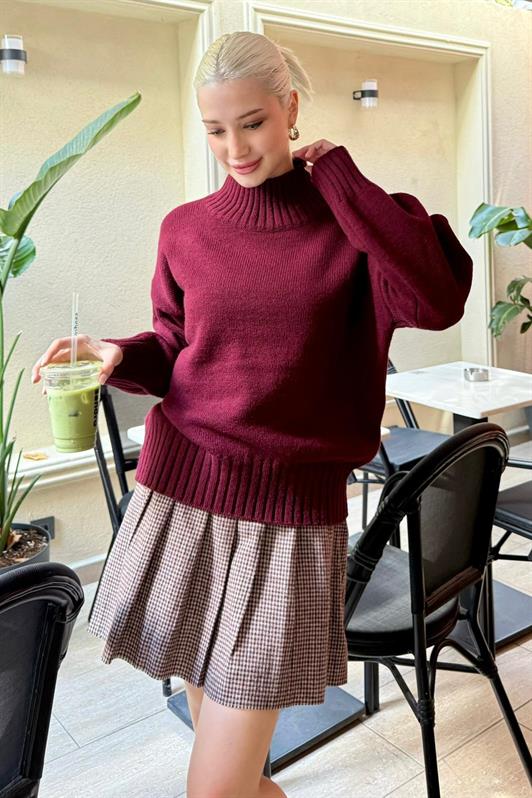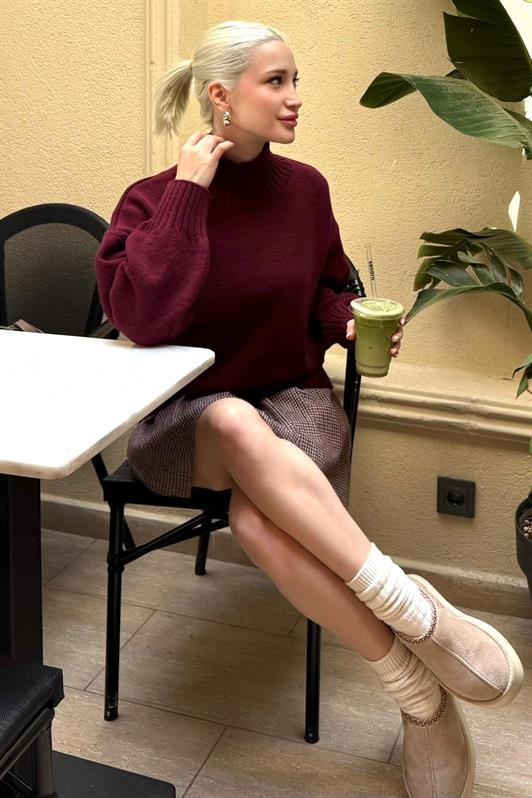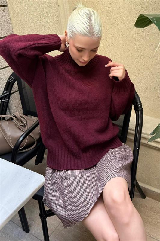 MDX Bordo Boğazlı Kadın Triko Kazak Mg2535 - Guaynabo