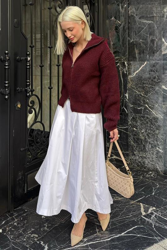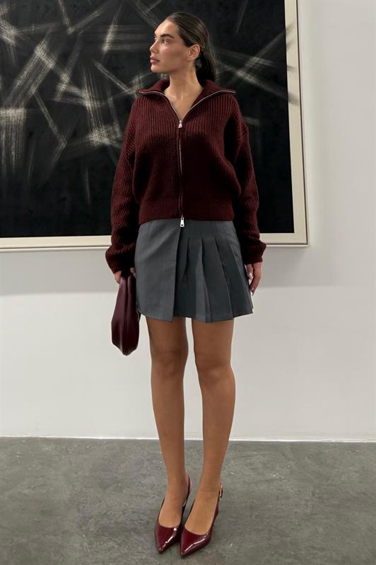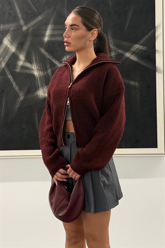 MDX Bordo Çift Fermuarlı Kadın Triko Hırka Mg2532 - Kamp-Lintfort