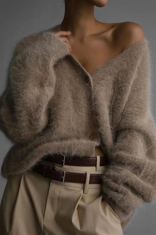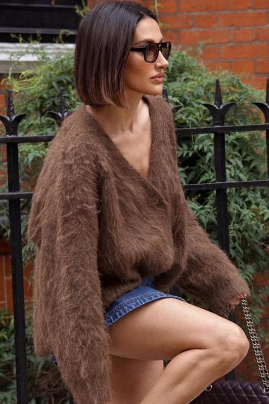 MDX Kahverengi Sakallı Düğmeli Kadın Hırka MG2570 - Bergisch Gladbach