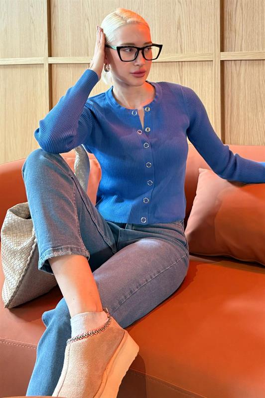 MDX Koyu Mavi Çıt Kapamalı Triko Kadın Hırka MG2579 - Vicenza
