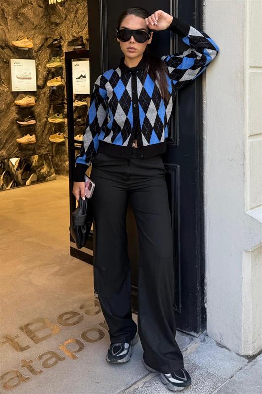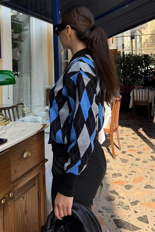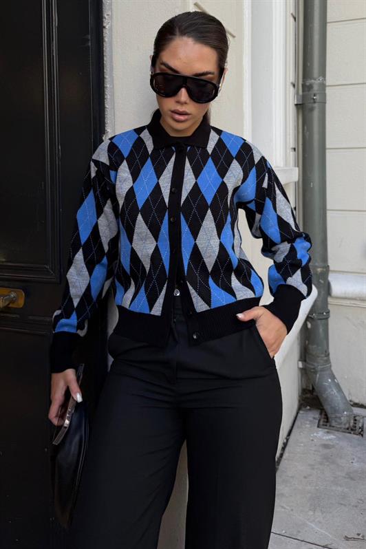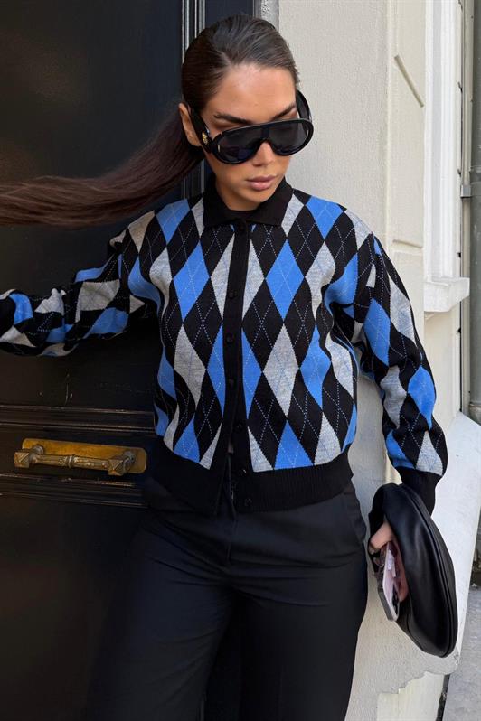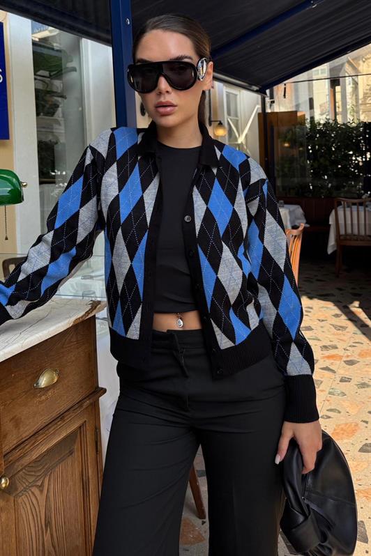 MDX Siyah Baklava Desenli Polo Yaka Kadın Hırka MG2478 - Torreón