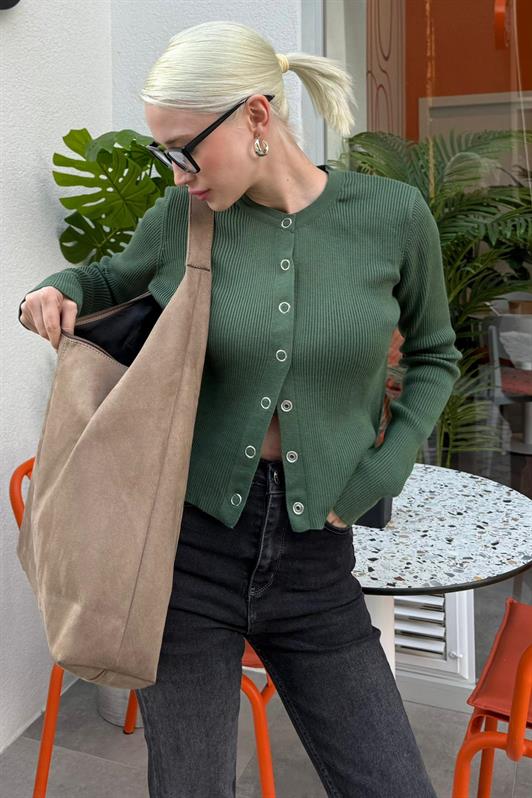 MDX Yeşil Çıt Kapamalı Triko Kadın Hırka MG2579 - Mason