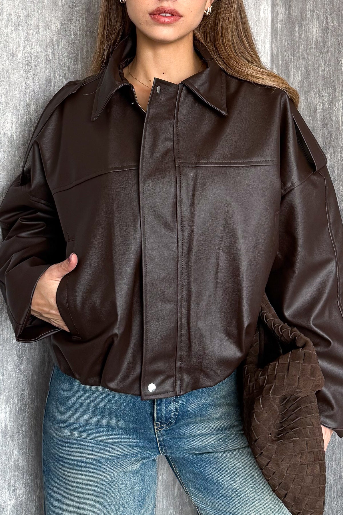 MPL Kadın Oversıze Altı Lastikli Deri Mont 1055 - Udine