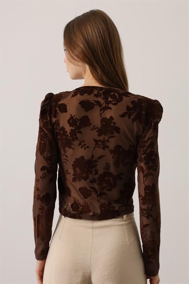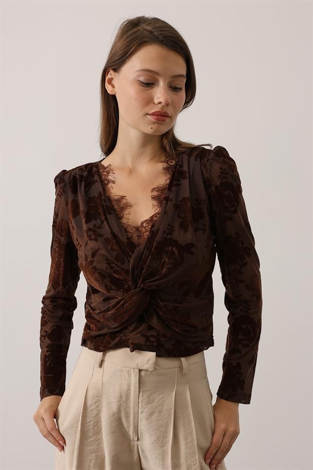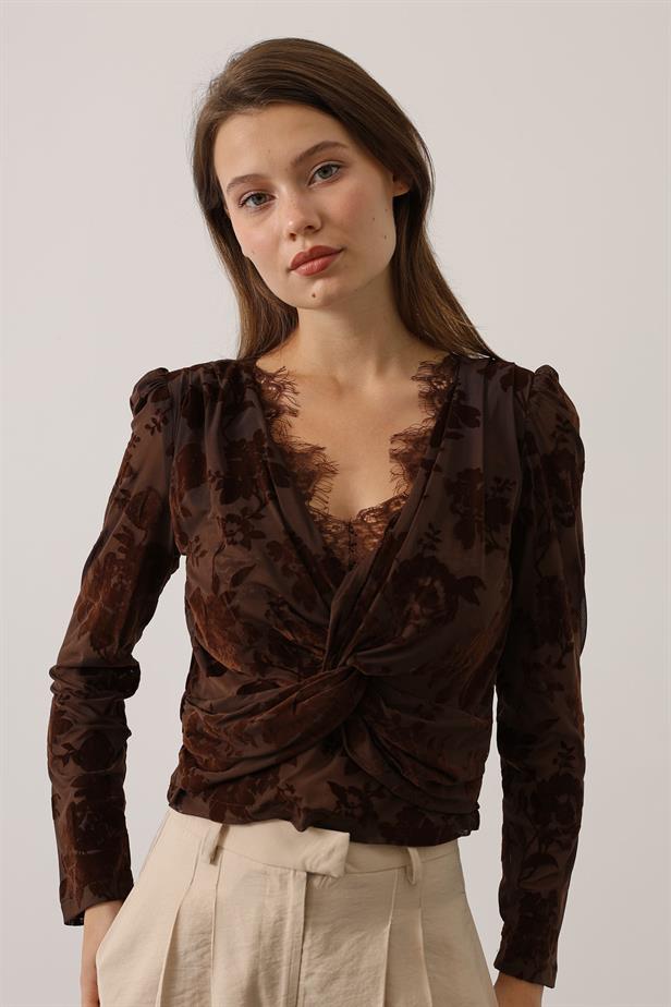 RYN DANTEL YAKALI BASKILI BLUZ - Kahve - Bellingham