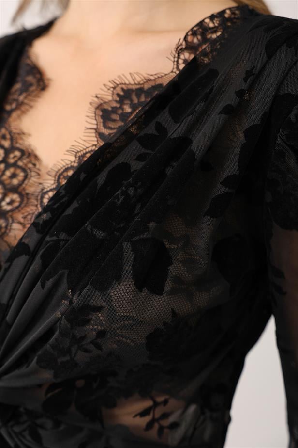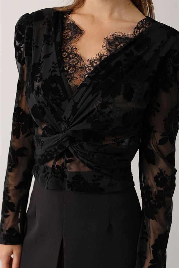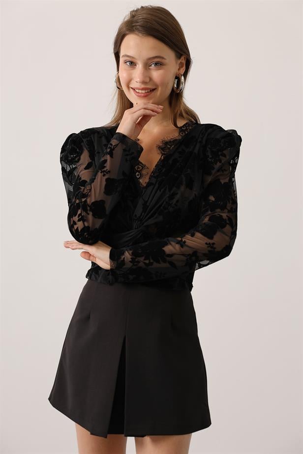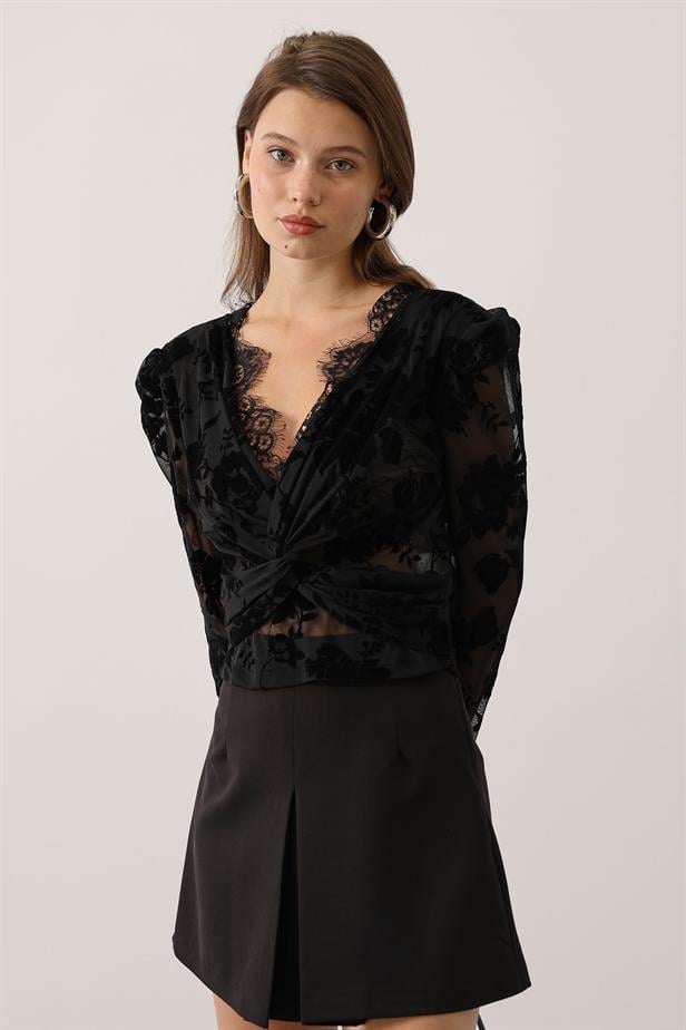 RYN DANTEL YAKALI BASKILI BLUZ - Siyah - Parker
