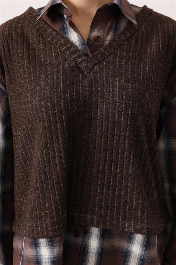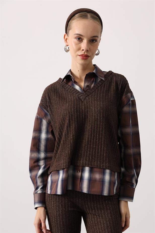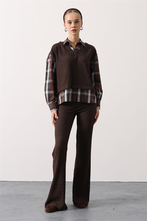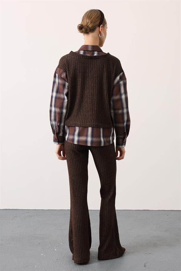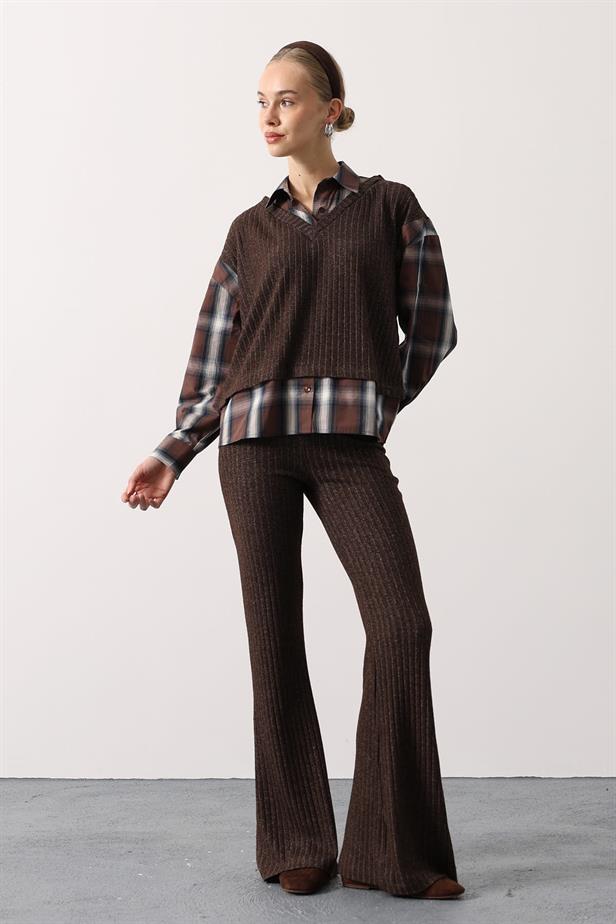 RYN EKOSELİ GÖMLEK DETAYLI TAKIM - Kahve - Chalándri