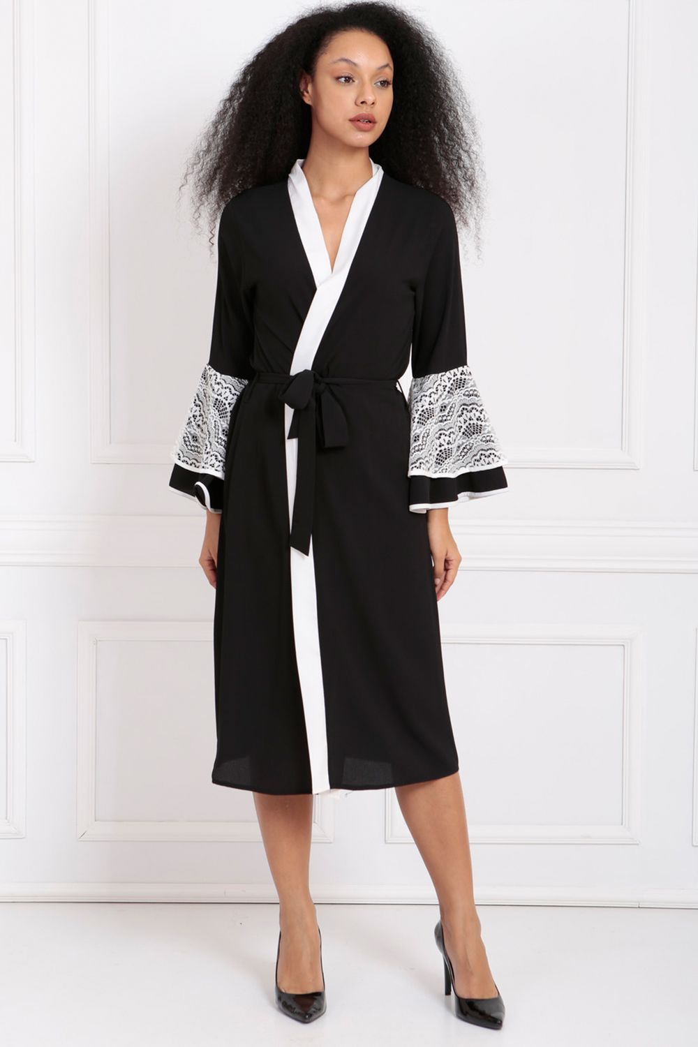 SNS Sense Black Collar Ruffled Lace Abaya - The Colony