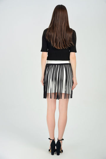 SNS Sense Ecru Short Leather Fringed Steel Skirt - Charleroi