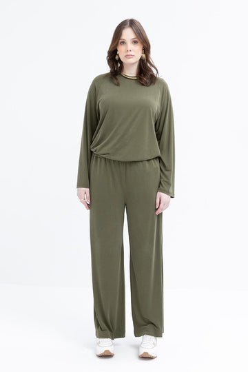 TLD Women Allday Haki Haki-large Size Elastic Waistband Lycra Wide Leg Pants - Freehold