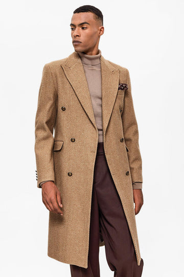 ANT Antioch Camel Herringbone Pattern Double-Breasted Men's Coat - Millcreek