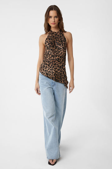 ANT Antioch Coffee Asymmetric Leopard Print Backless Women's Top - Compton