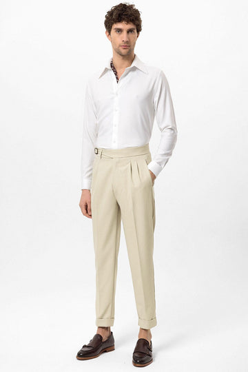 ANT High Waist Pleated Buckle Detailed Men's Trousers - Coral Springs