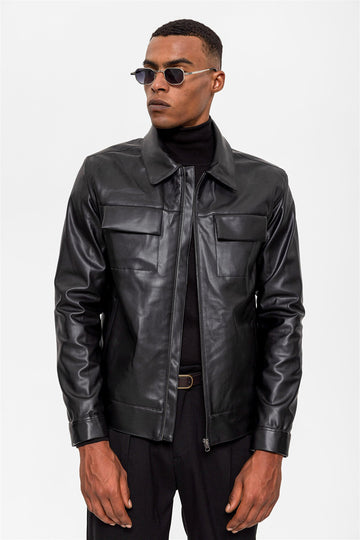 ANT Men's Leather Jacket with Pocket Detail - Socorro