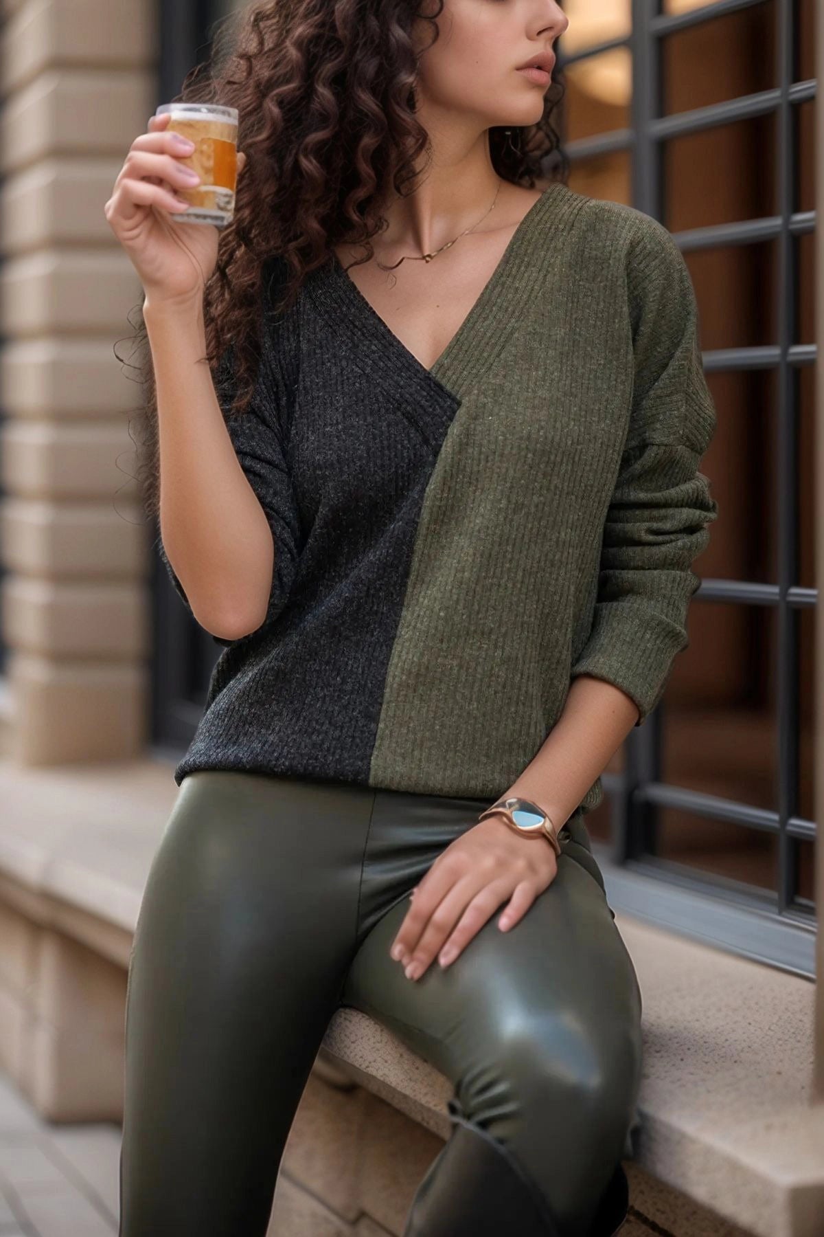 Anthracite Gray V-Neck Color Block Sweater BCBSK-25700-2778 - Yenakiieve