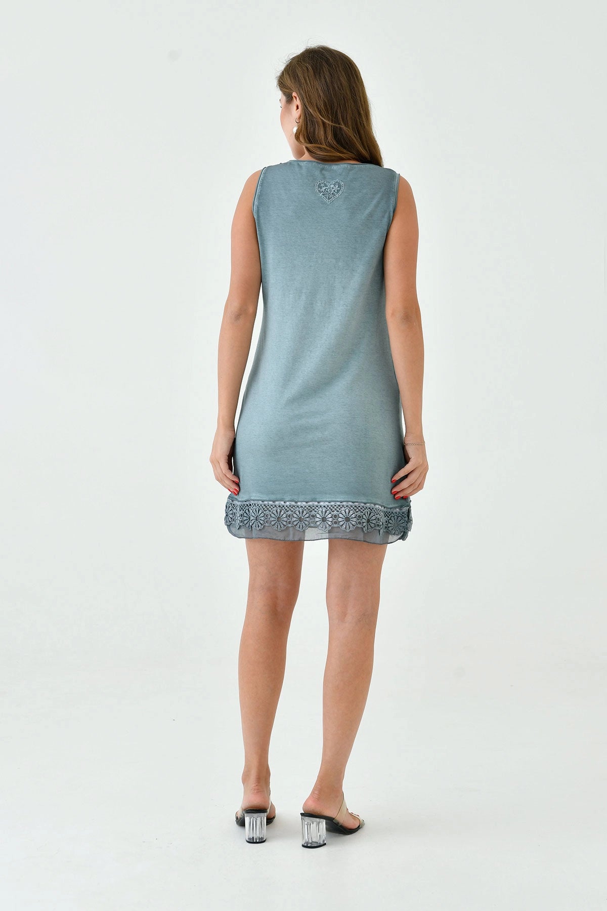 Anthracite Sleeveless Viscose Dress with Guipure Detail and Color Gradient for Summer BC25PKN13 - Sidcup