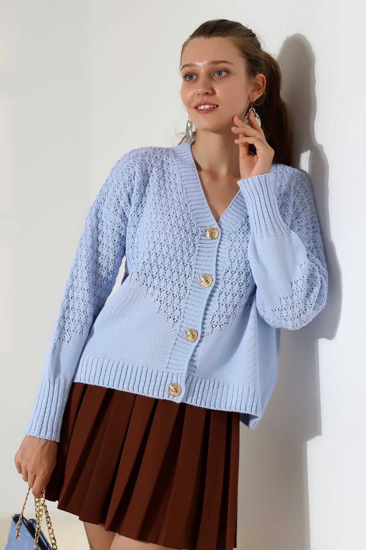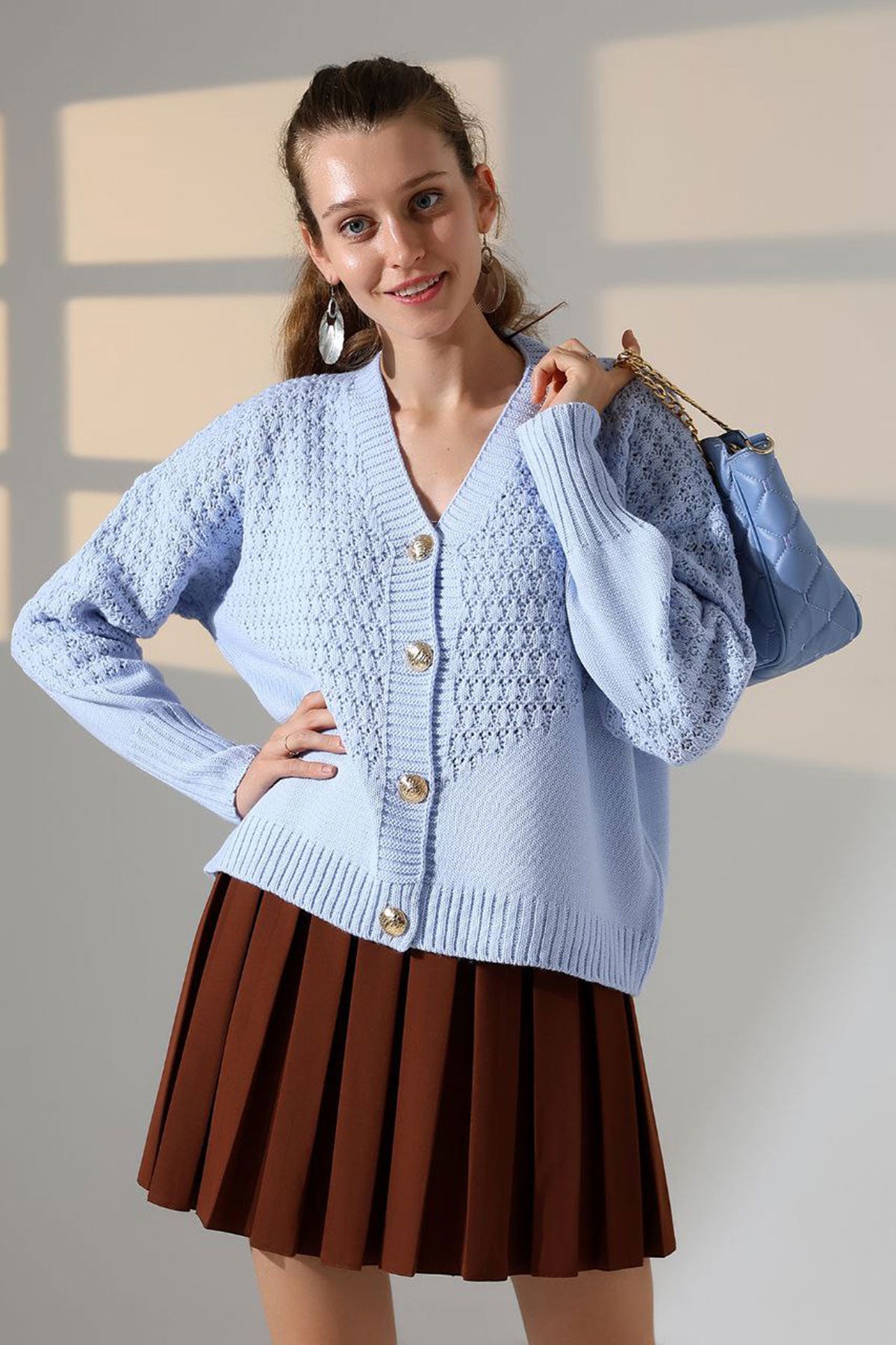 Baby Blue Patterned Buttoned Cardigan BCES-252027 - Goose Creek