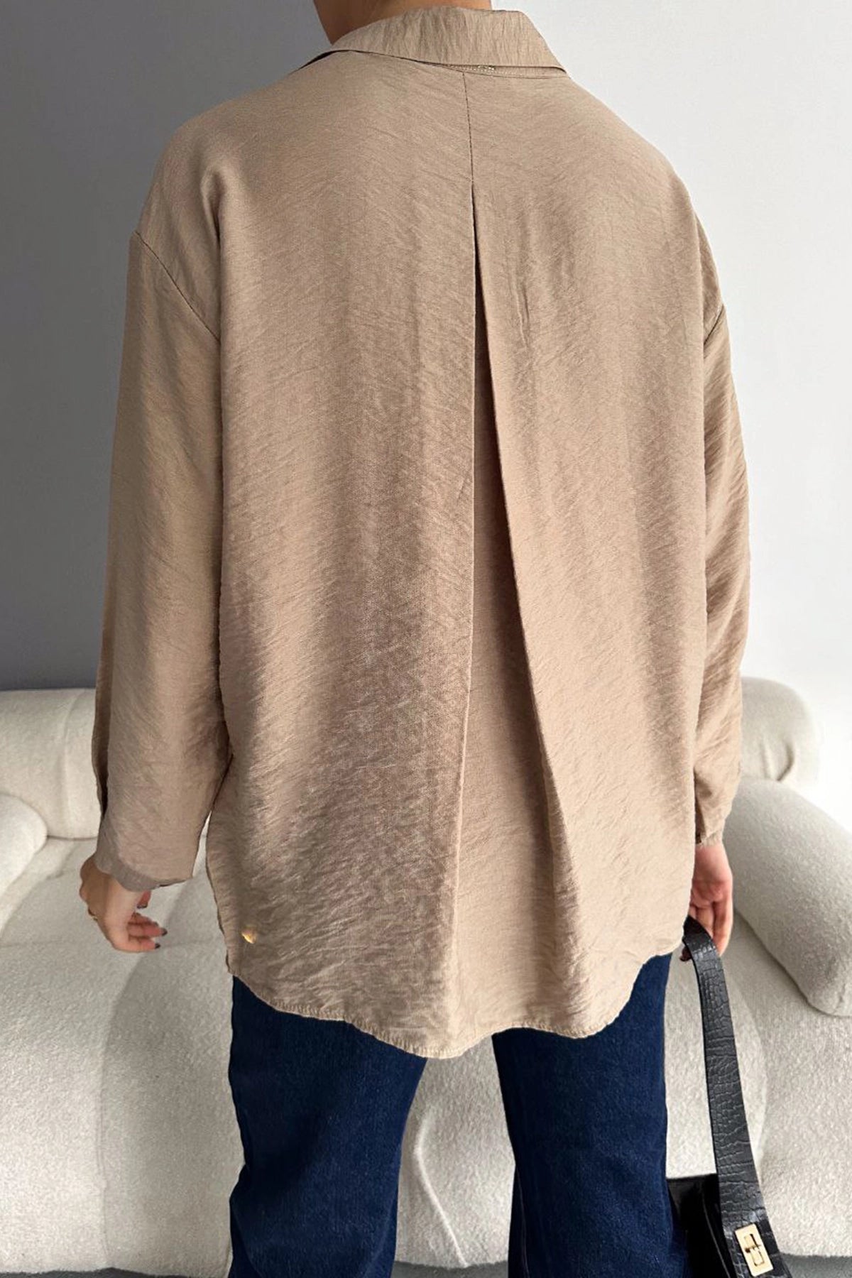 Beige Aerobin Woven Single Pocket Oversized Shirt