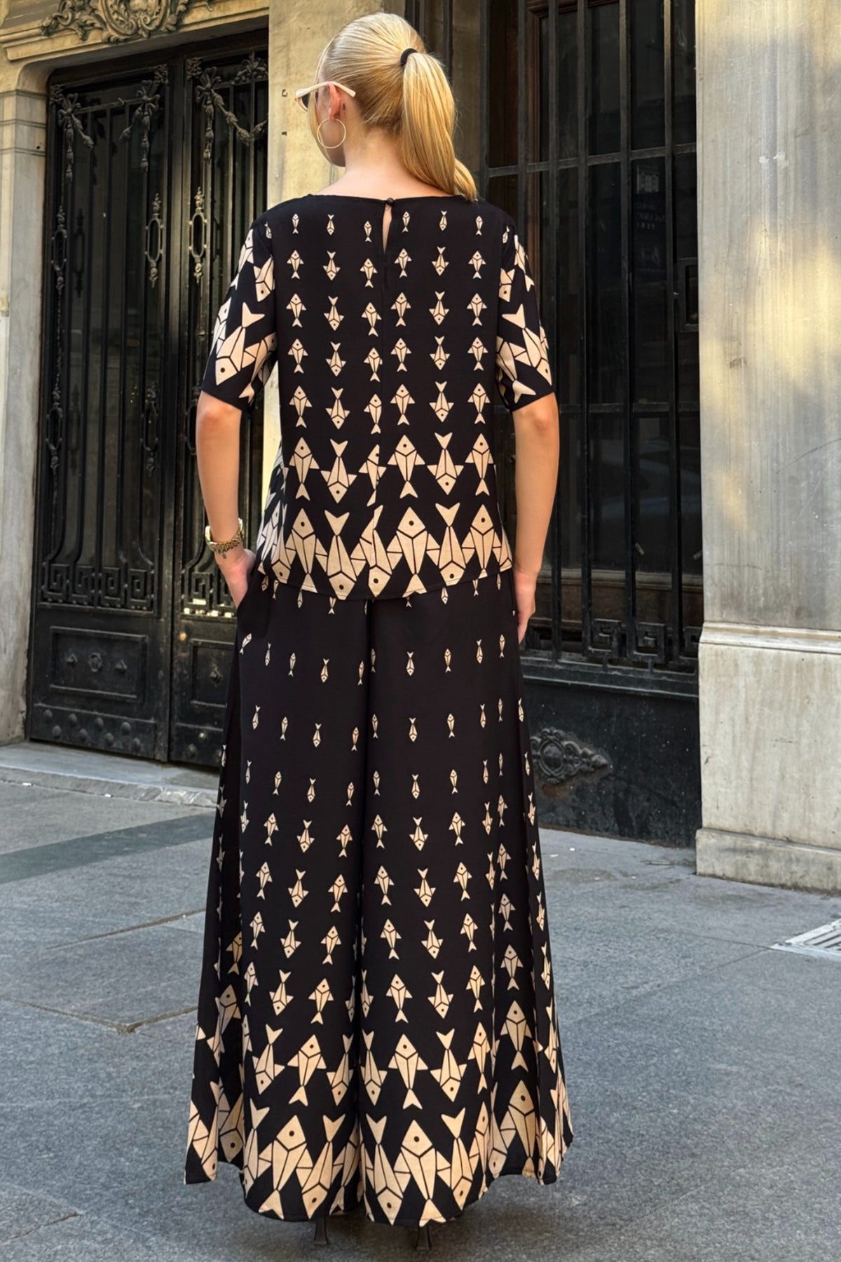 Beige Bicycle Collar Patterned Blouse and Pants Set BCVL-254002 - Jacksonville