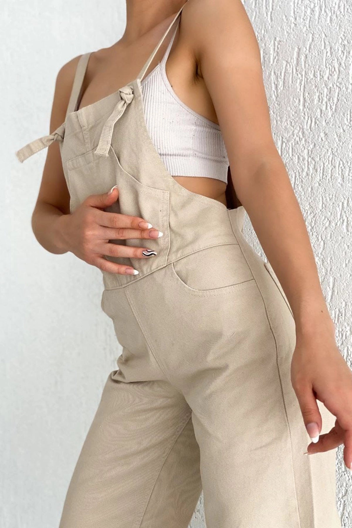 Beige Denim Gardener Palazzo Jumpsuit BCDF-234202 - Atascocita