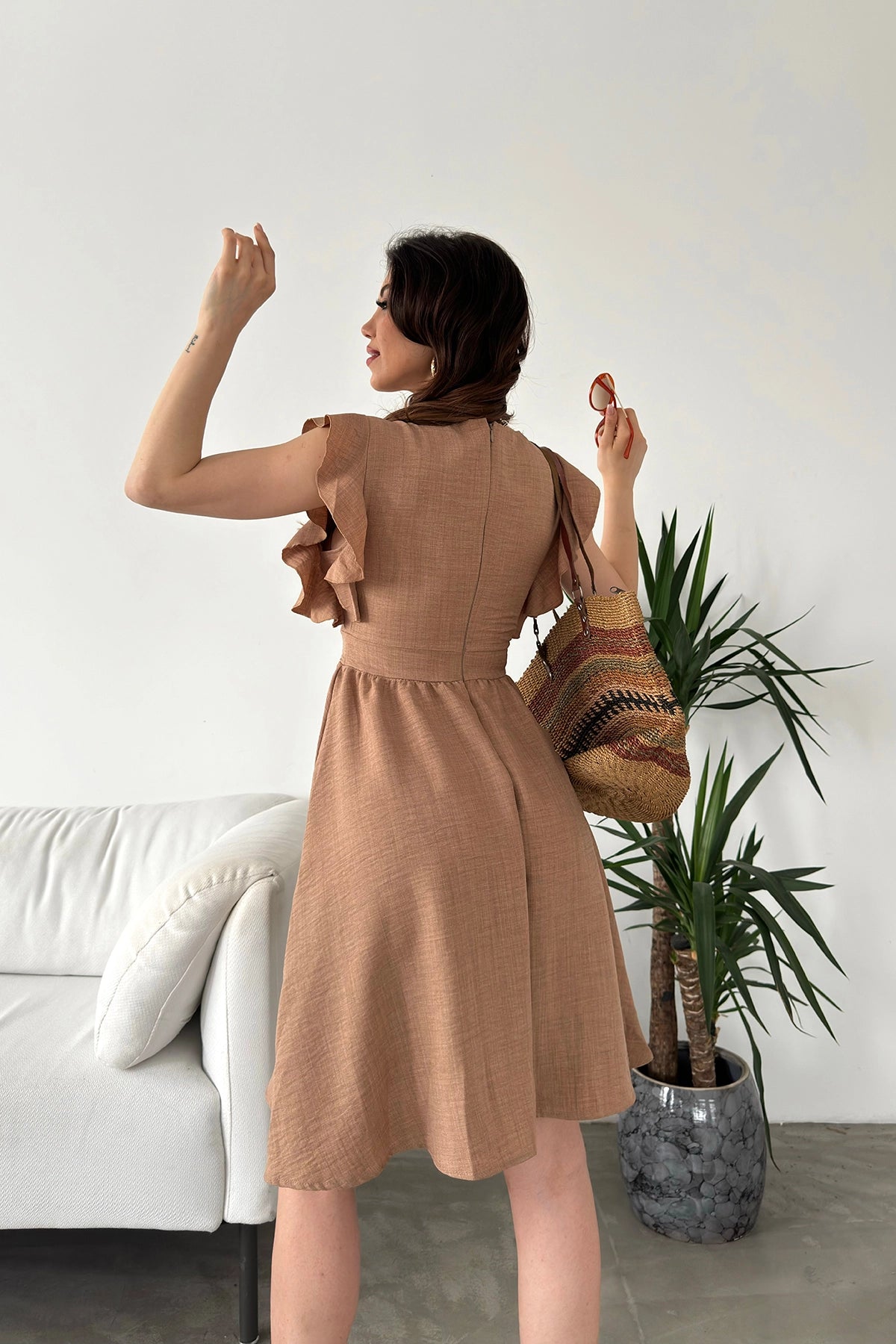 Beige Dress with Chest Decollete and Ruffled Sleeves BCDF-241069 - Scottsdale