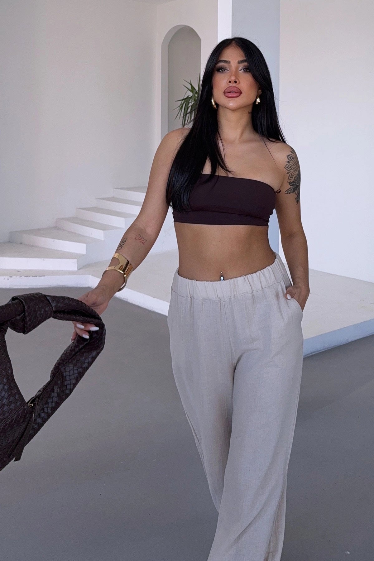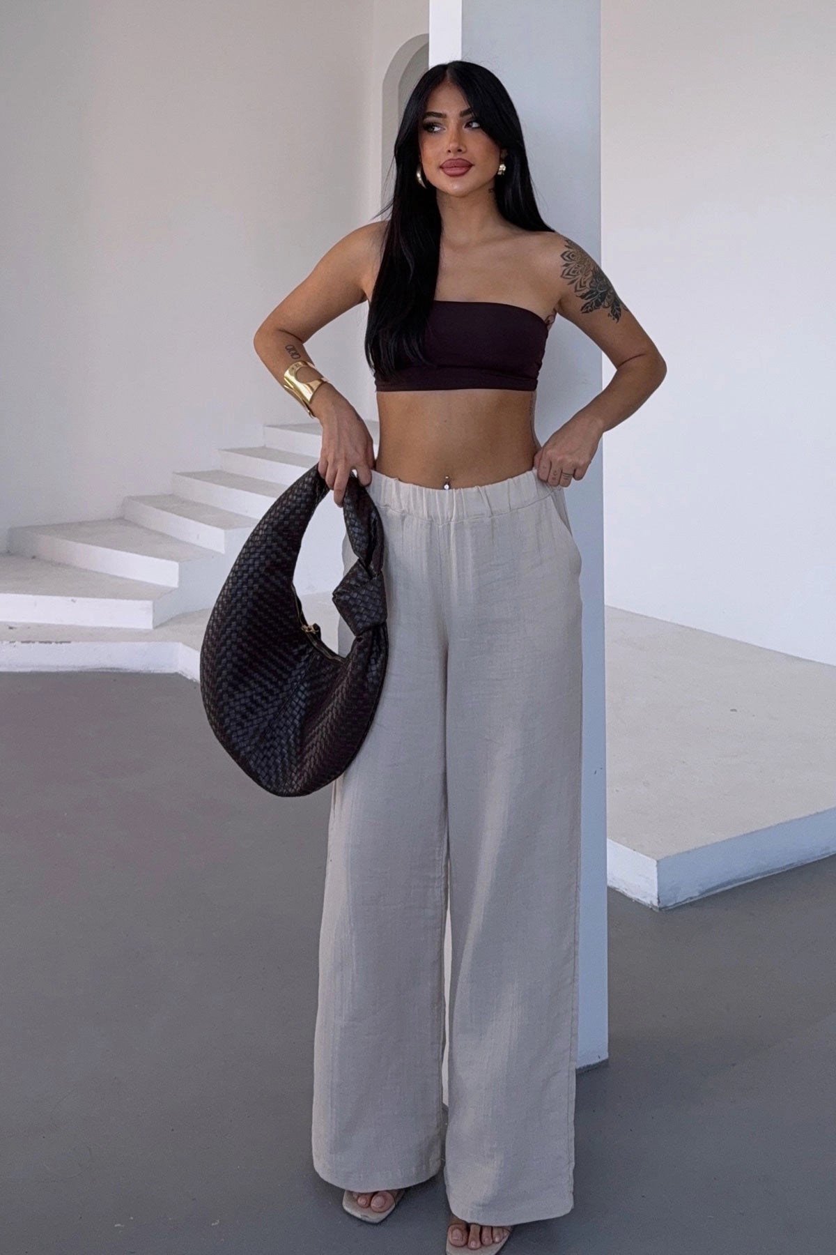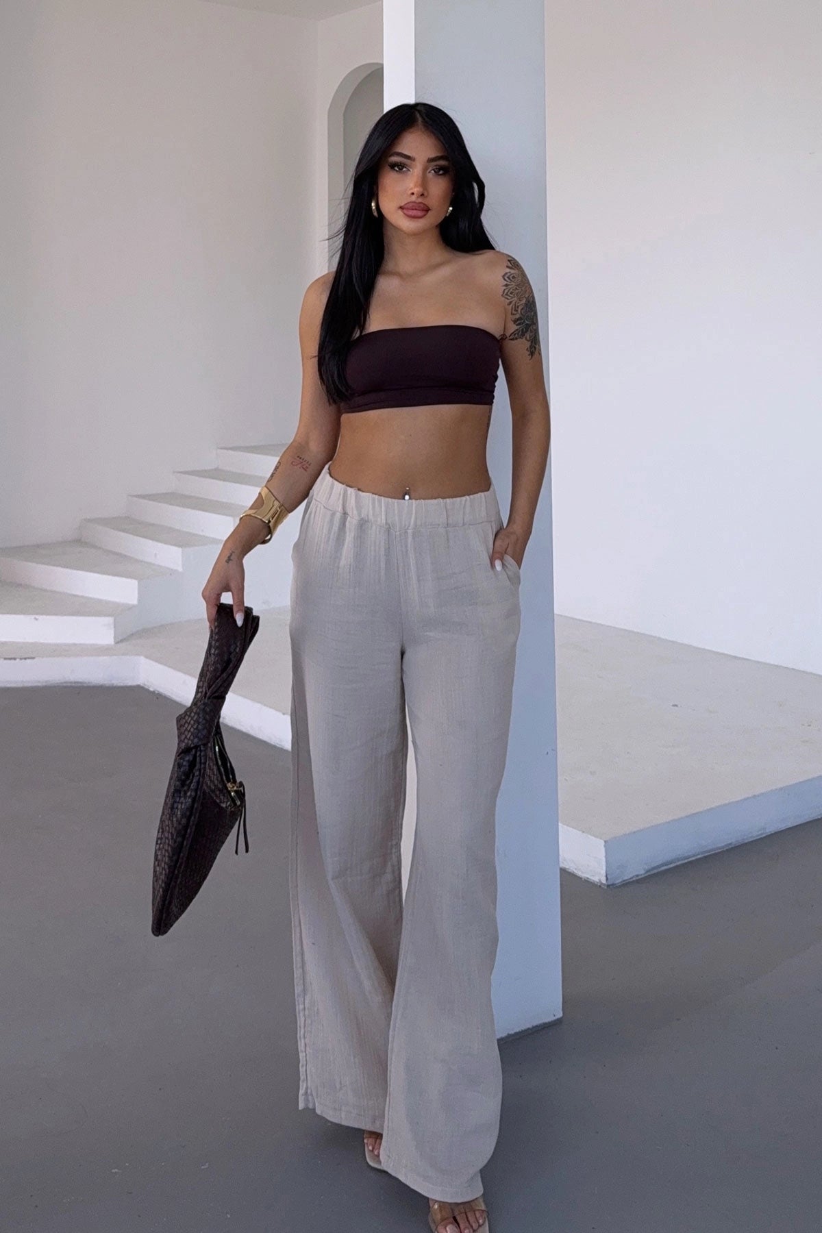 Beige Elasticated Muslin Woven Trousers BCBT-251007 - Pleasant Hill
