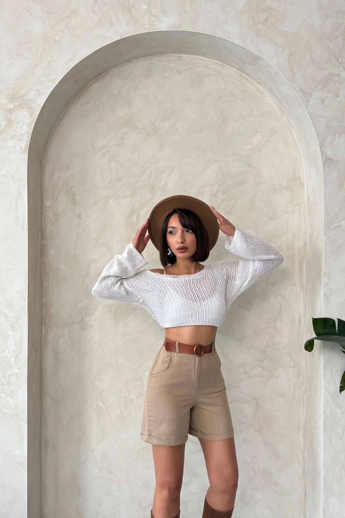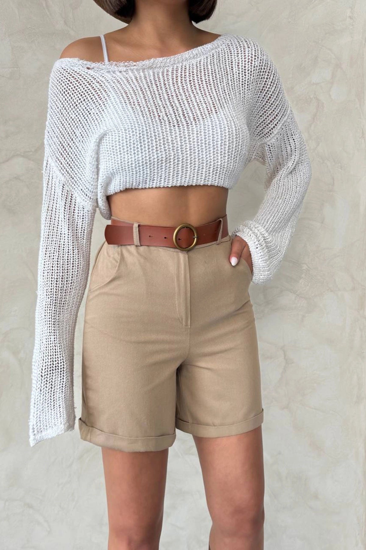 Beige Gabardine Belted Shorts BCHN-2525735 - Freehold