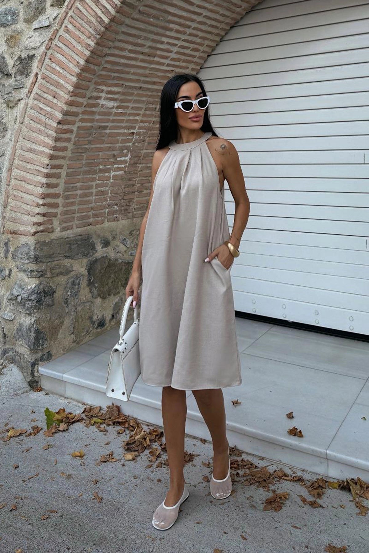 Beige Hidden Pocket Summer Linen Woven Dress BCDF-25255029 - Gosport