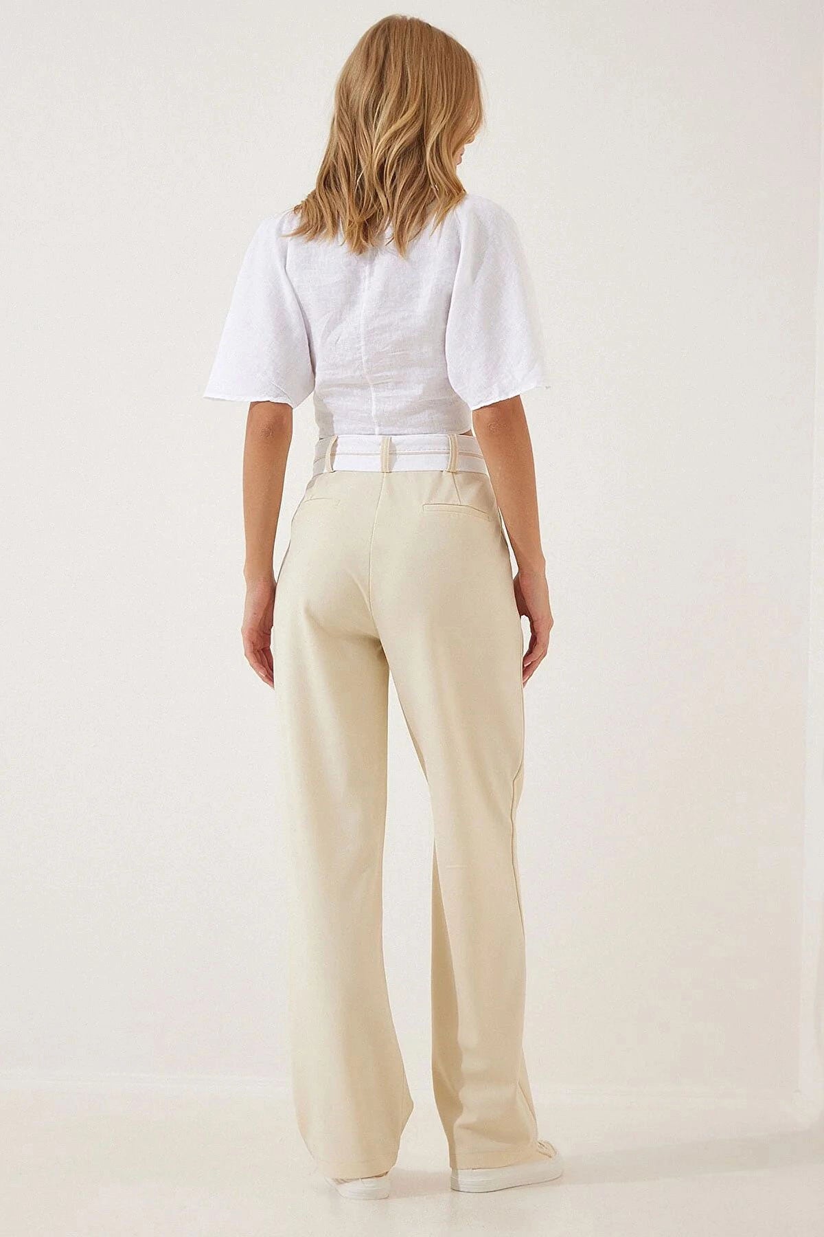 This Beige Color Atlas Belted Wide Leg Comfortable High-Quality Fabric Palazzo Pants is an excellent piece for a combination. It is made of high-quality fabric, durable and comfortable with 65% polyester and 35% viscose content. The design of these palazzo pants has a modern style. With its wide cut, it offers comfort and freedom of movement, while emphasizing your waist with the belted detail. The beige color provides a calm and elegant look, making it easy to combine with various colored tops. Additionally, these palazzo pants stand out with their color pattern and design. The warmth of the beige color makes it suitable to wear in any season and easily complements any style. The fabric's atlas texture adds a stylish shine and a tactile sensation to the pants, allowing you to achieve a dazzling look. These pants can be easily worn at any social or formal event. It helps you maintain your elegance at the office, dinner, or when meeting friends. With its stylish and comfortable design, it is also an ideal choice for daily wear. The Beige Color Atlas Belted Wide Leg Comfortable High-Quality Fabric Palazzo Pants is a piece that offers flawless harmony and comfort. With its high-quality fabric, eye-catching design, and beige color, it will become an indispensable part of your wardrobe. It is an ideal choice for any woman who wants to achieve a stylish and elegant look.